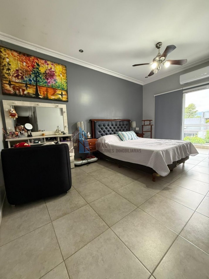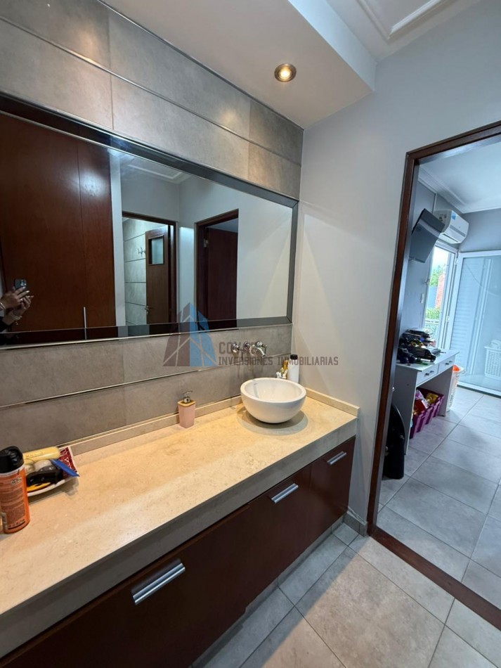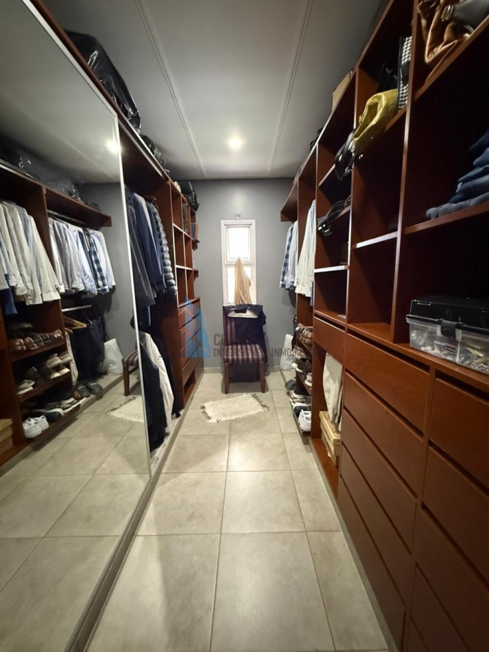 La planta alta está dedicada al descanso y la privacidad. Cuenta con tres dormitorios, destacándose la suite principal con vestidor y baño privado con hidromasaje. Las habitaciones secundarias tienen acceso a un generoso balcón corrido que aporta gran luminosidad y ventilación. Un segundo baño completo en este nivel, también con hidromasaje.