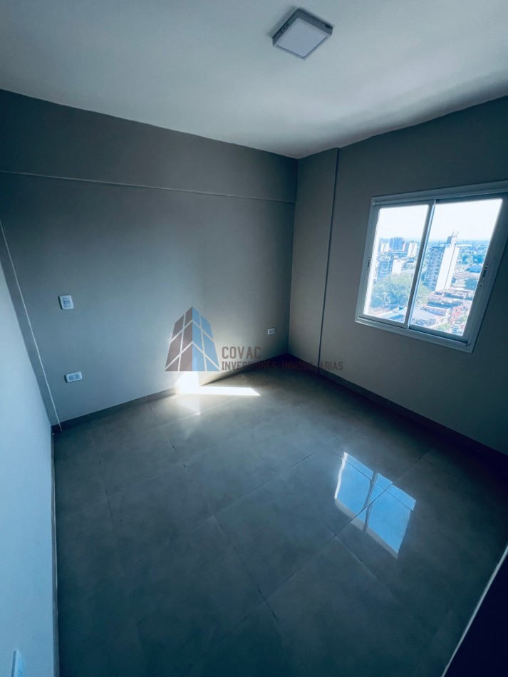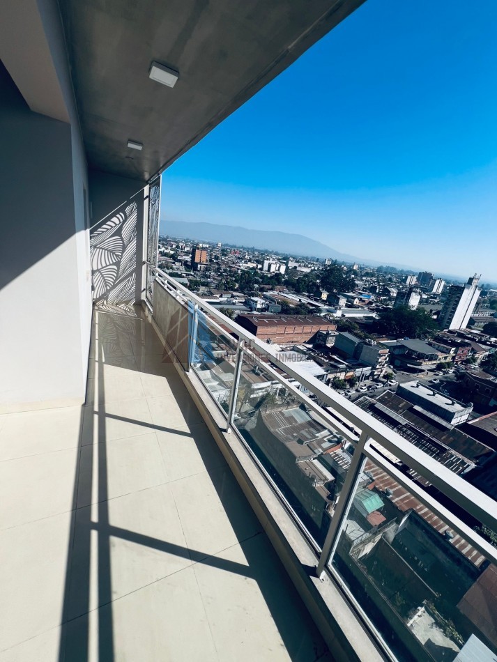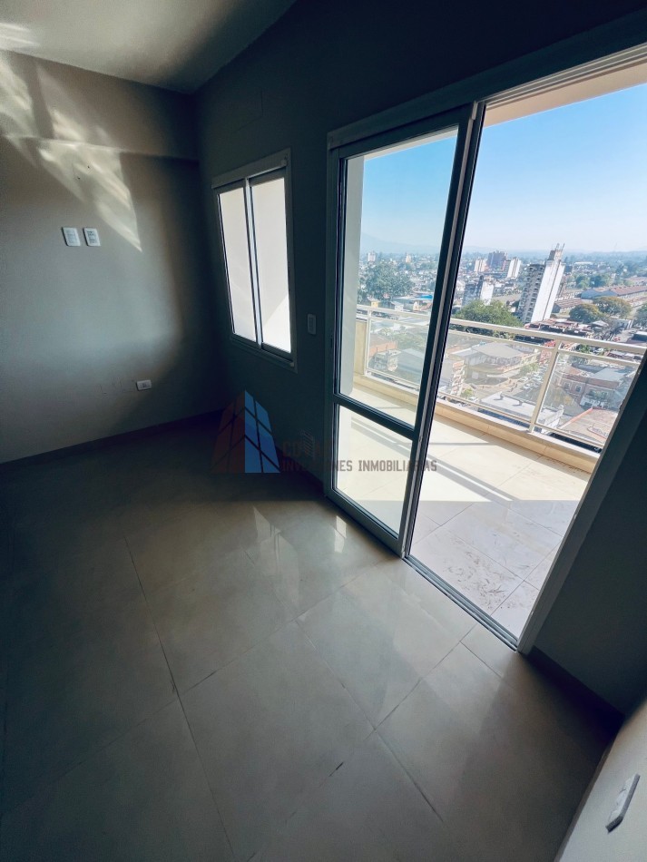 Amplios y luminosos ambientes, con salida a balcón y vistas abiertas desde un piso alto.