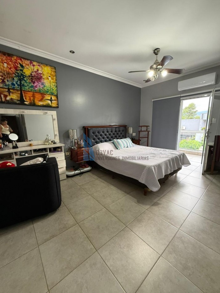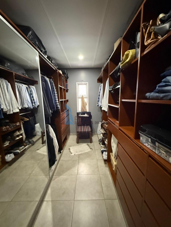 La planta alta está dedicada al descanso y la privacidad. Cuenta con tres dormitorios, destacándose la suite principal con vestidor y baño privado con hidromasaje. Las habitaciones secundarias tienen acceso a un generoso balcón corrido que aporta gran luminosidad y ventilación. Un segundo baño completo en este nivel, también con hidromasaje.