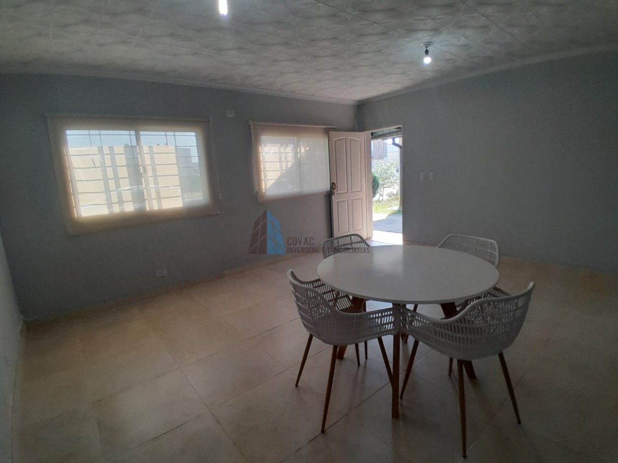 Cuenta con 110 m² cubiertos y 10 m² semicubiertos.