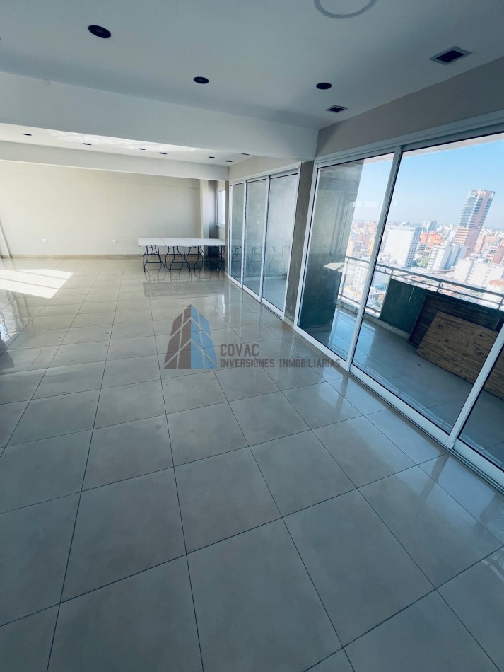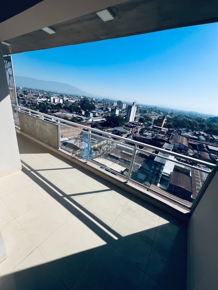 Amplios y luminosos ambientes, con salida a balcón y vistas abiertas desde un piso alto.